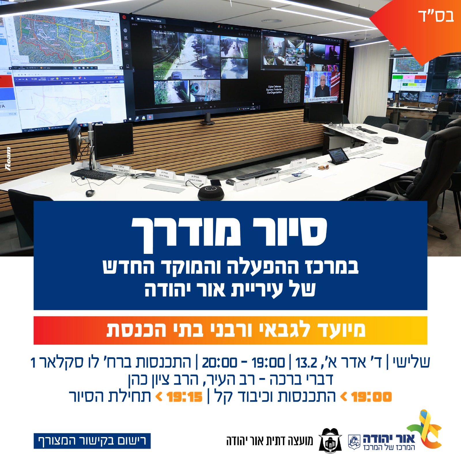 סיור מודרך במרכז ההפעלה והמוקד החדש של עיריית אור יהודה לגבאי ורבני בתי הכנסת