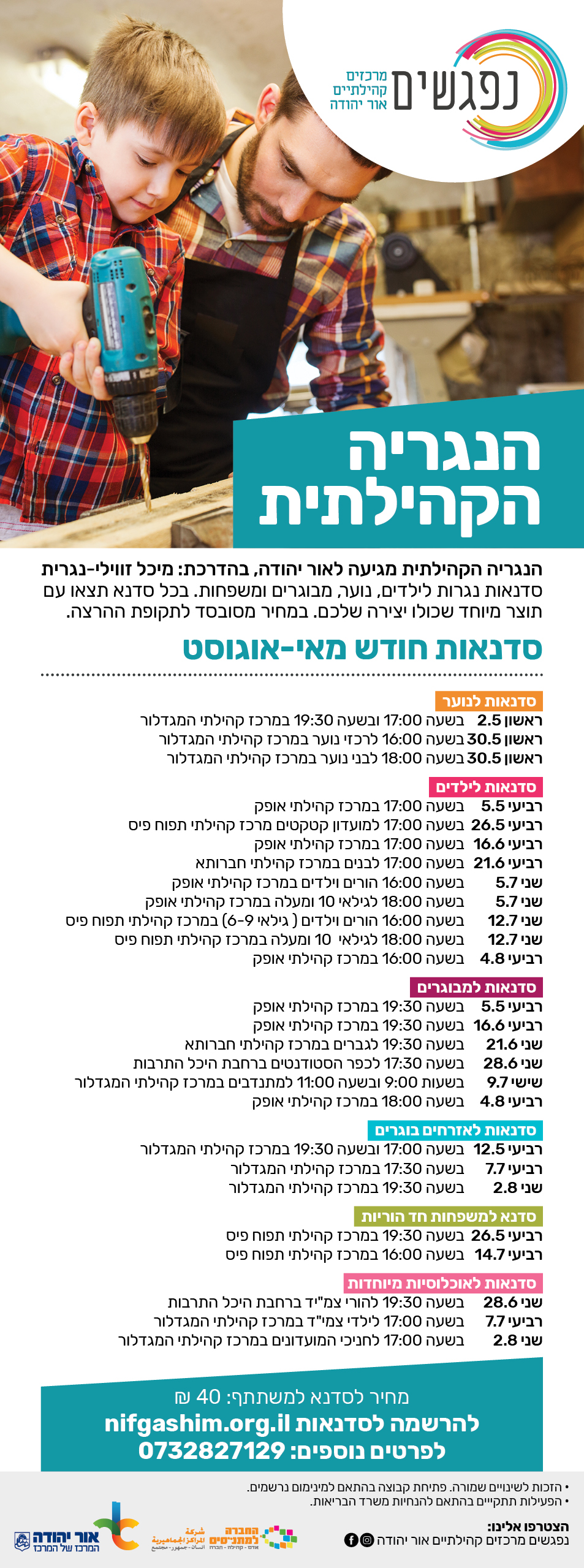 מחיר לסדנא למשתתף: 40 ש"ח