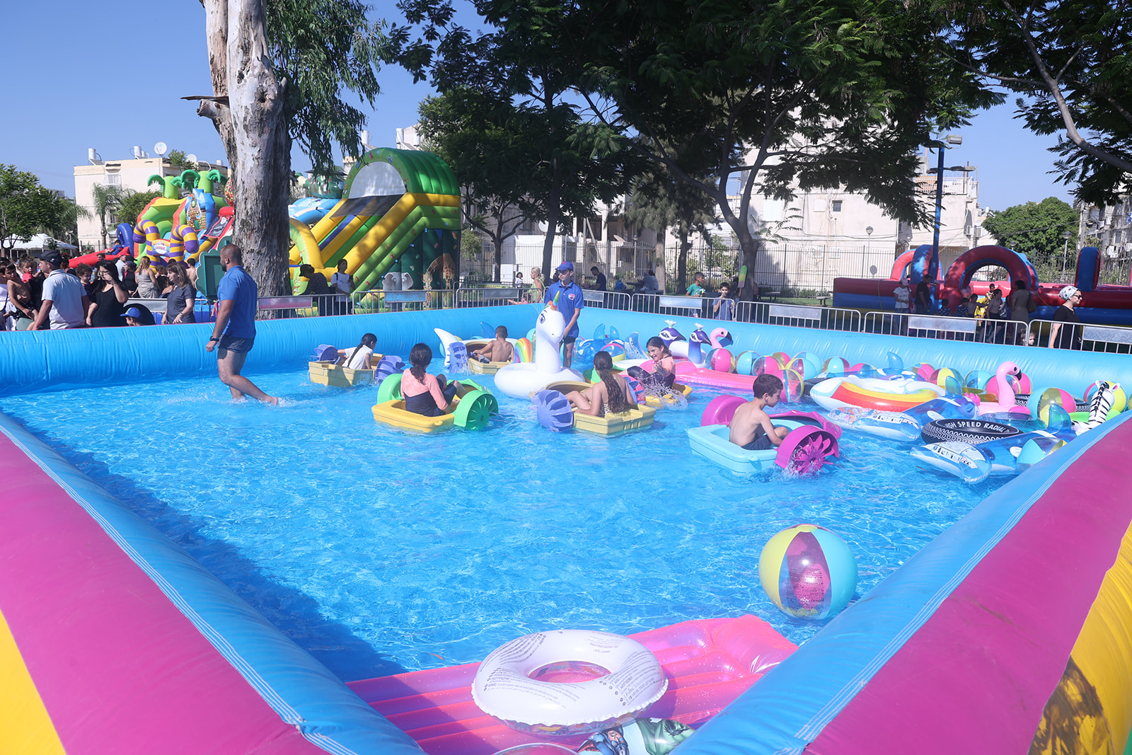 בין השאר ניתן היה למצוא מגלשות קצף רבות, מגלשות פירטאים, מגלשת כריש בגובה של ארבעה מטרים, בריכת סירות פדלים, מגלשת ספארי, מתחם ג'ימבורי לקטנטנים ופינות ישיבה. במשך שלוש שעות וחצי נהנו הילדים מההפעלות תחת מזג האוויר החמים. האירוע הופק על ידי אגף תרבות ואירועים בראשות חנה פיזואטי יוסף והוא התקיים בשיתוף החברה הכלכלית לפיתוח אור יהודה.