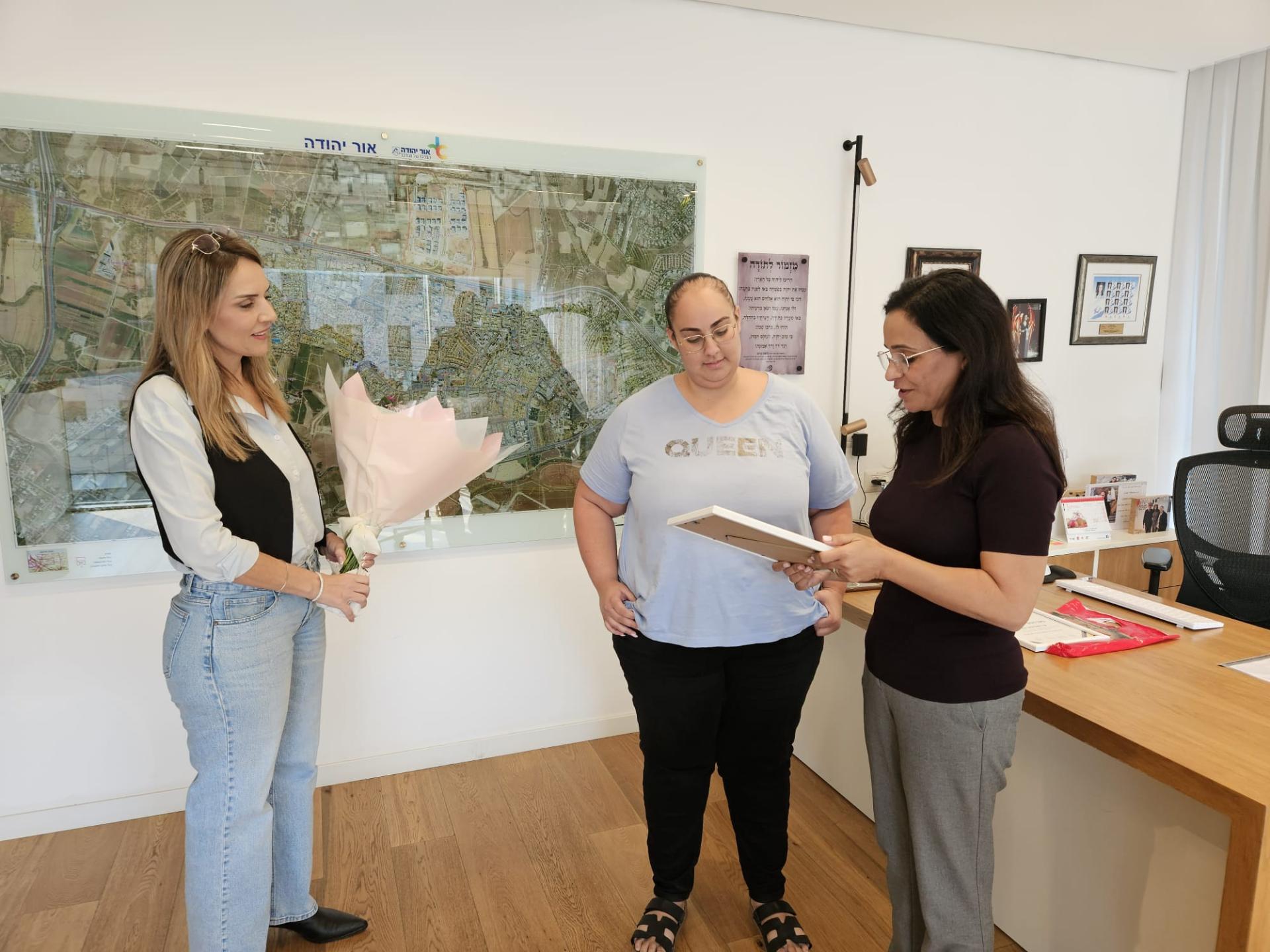 השלושה הגיעו ללשכת ראש העיר, ונפגשו עם ראש העיר, ליאת שוחט, שהודתה להם על השירות המסור והמחויבות היומיומית לקידום מענים בתחומי הפעילות של המחלקות. לצד ראש העיר, קיבלו השלושה את התעודות ממנכ"ל העירייה, גיל גבריאל, מנהלת אגף השירות, יונית ביסור, מנהלת מחלקת משאבי אנוש, יהודית שקורי, והמנהלים הישירים שלהם.
