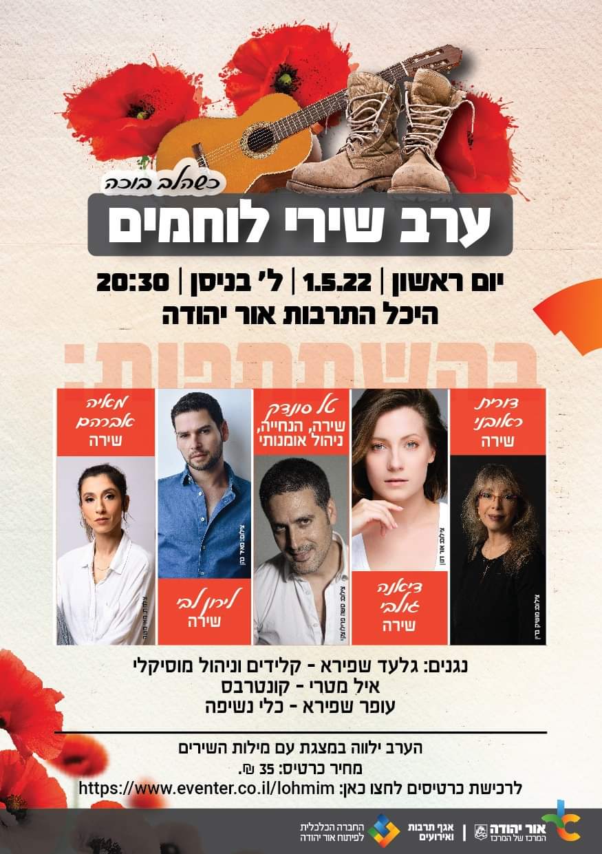 יום ראשון, 1.5.22, ל' בניסן, 20:30, היכל התרבות אור יהודה