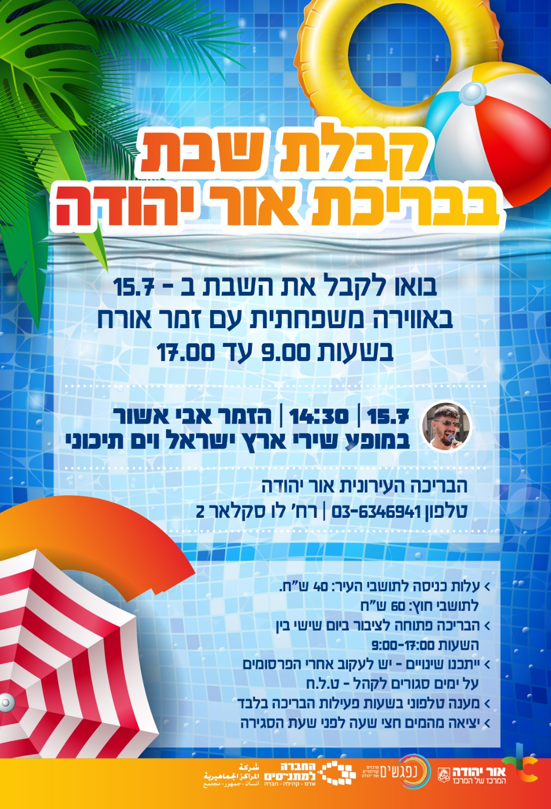 בואו לקבל את השבת ב-15.7 באווירה משפחתית עם זמר אורח בשעות 9:00 עד 17:00