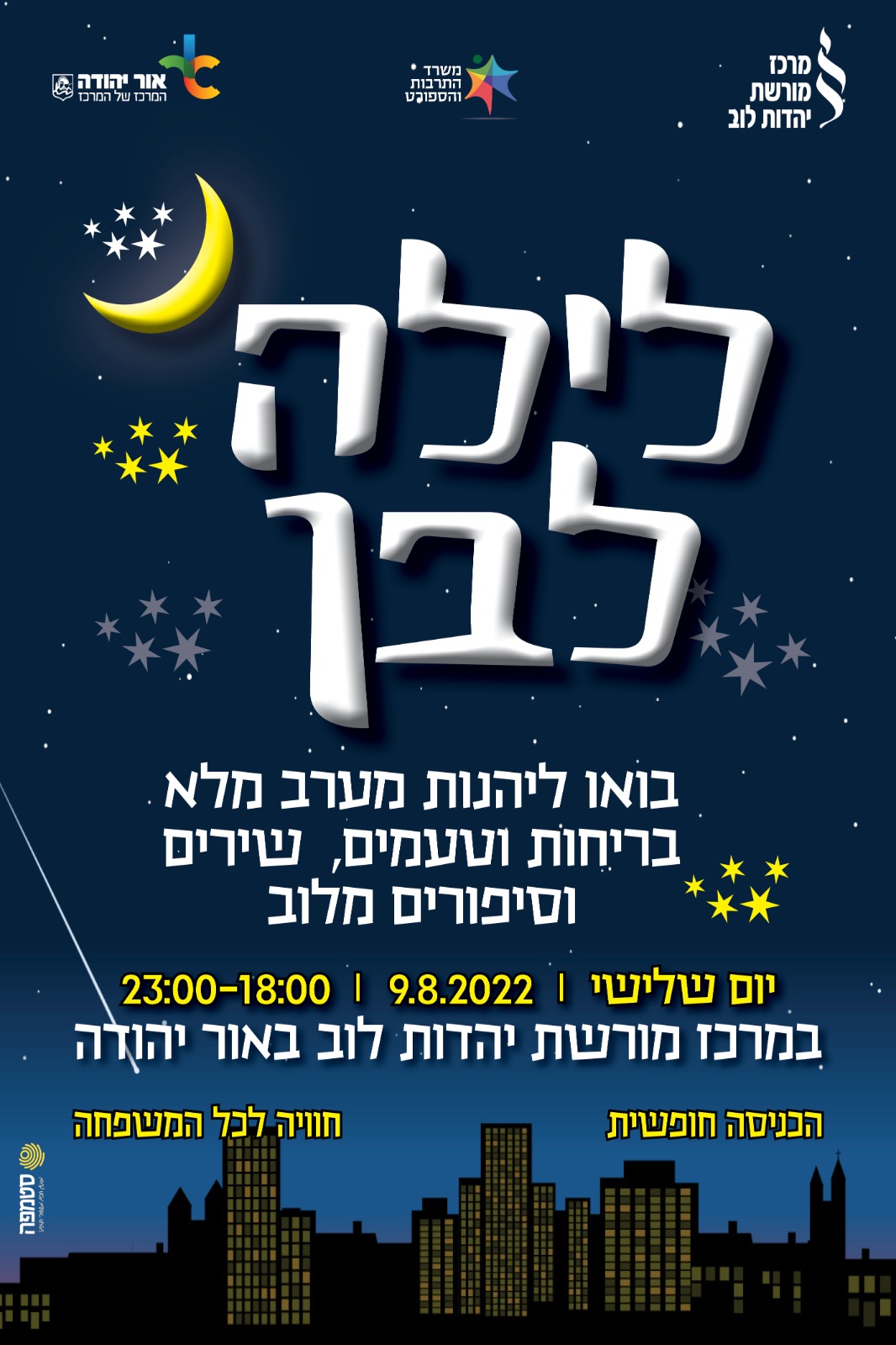 יום שלישי, 9.8.22, 18:00 - 23:00, במרכז מורשת יהדות לוב באור יהודה