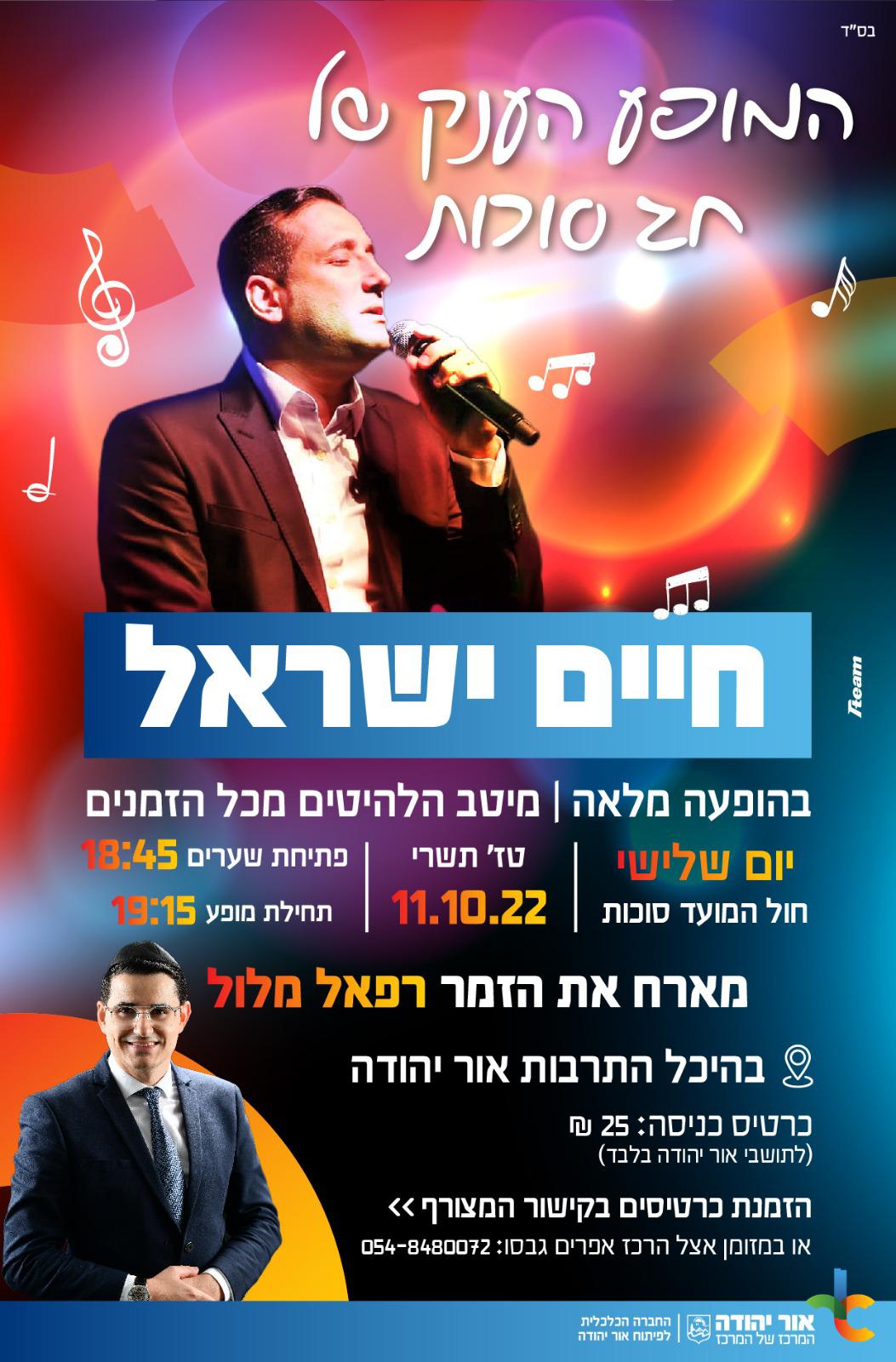 מארח את הזמר רפאל מלול בהיכל התרבות אור יהודה