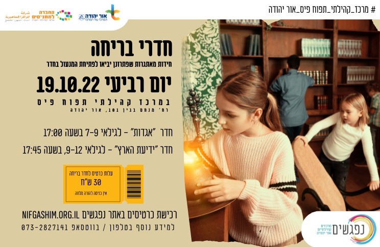 יום רביעי, 19.10.22, במרכז קהילתי תפוח פיס - רח' מנחם בגין 101, אור יהודה