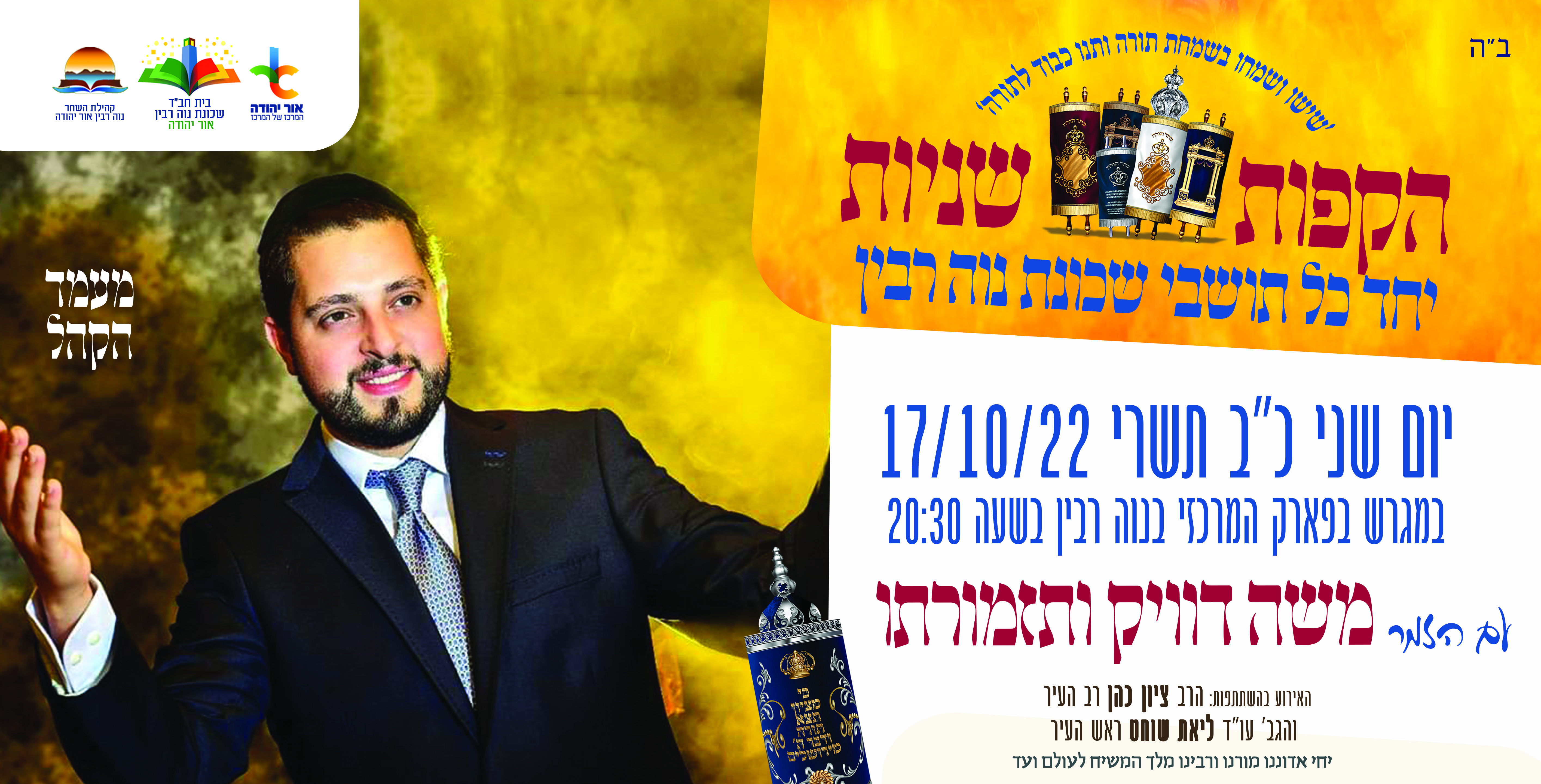 יום שני, כ"ב תשרי, 17.10.22, במגרש בפארק המרכזי בנווה רבין בשעה 20:30