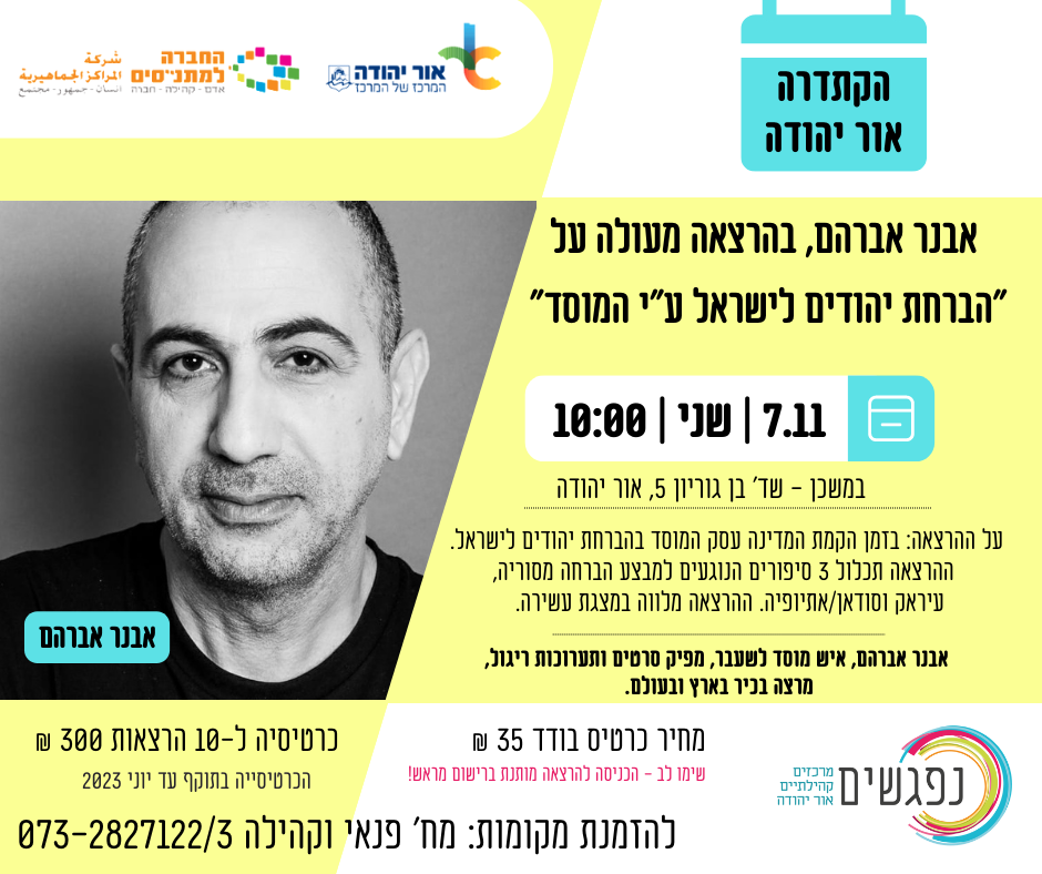 אבנר אברהם בהרצאה מעולה על "הברחת יהודים לישראל על ידי המוסד"