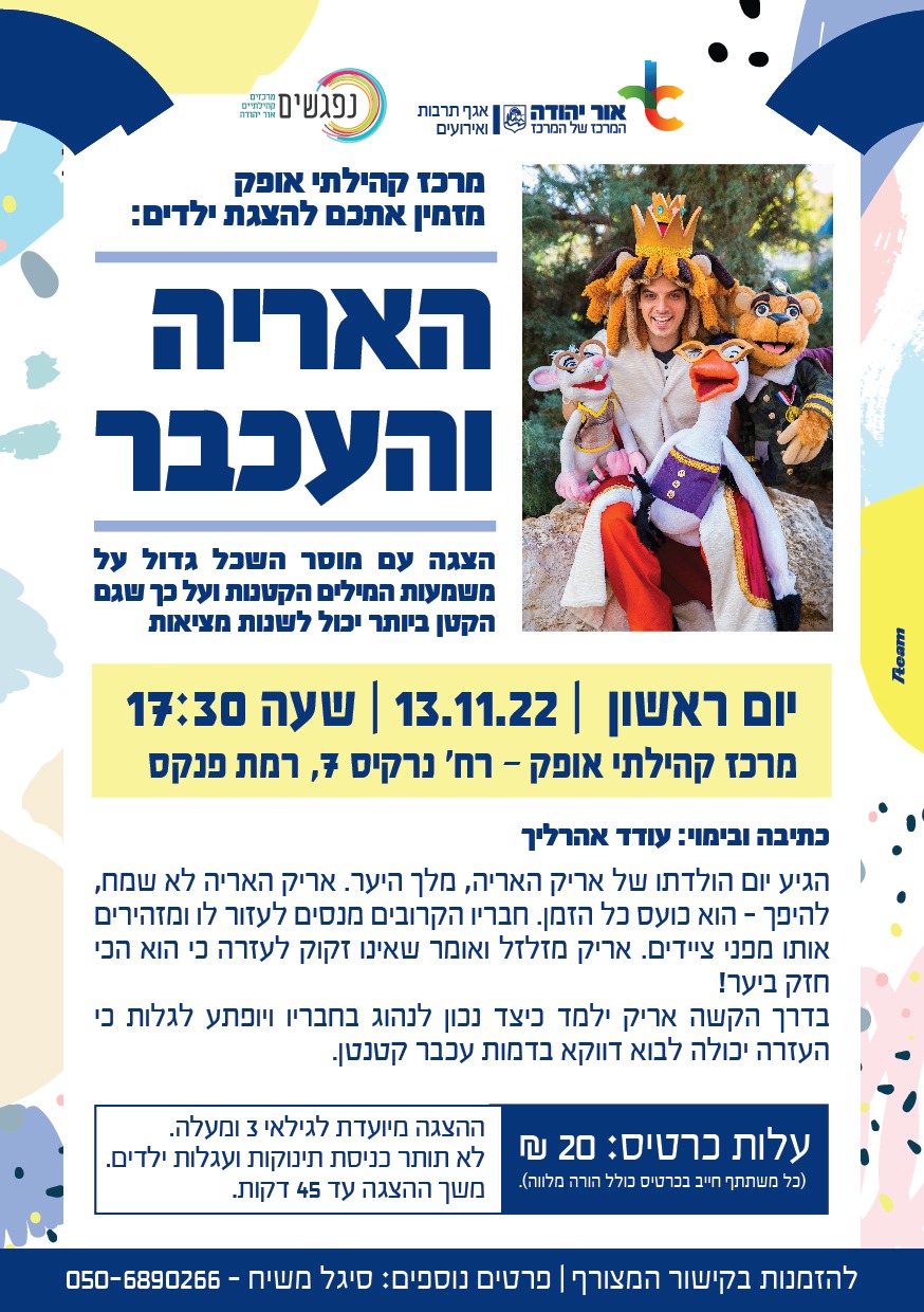 מרכז קהילתי אופק מזמין אתכם להצגת ילדים: האריה והעכבר