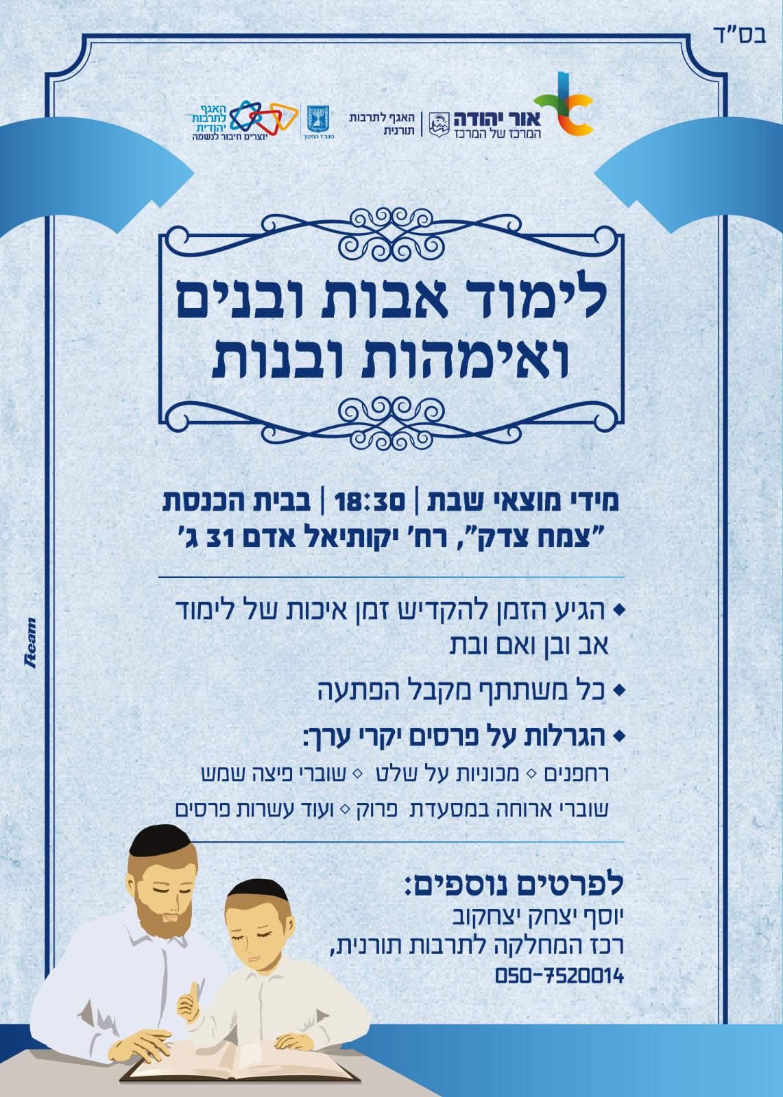 הגיע הזמן להקדיש זמן איכות של לימוד אב ובן, ואם ובת.