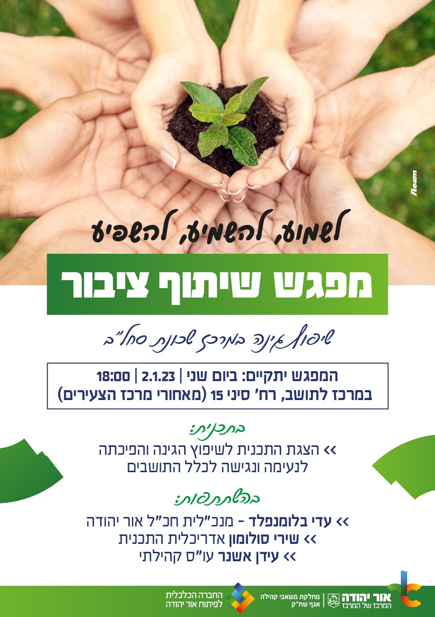 המפגש יתקיים ביום שני, 2.1.23, בשעה 18:00, במרכז לתושב, רח' סיני 15 (מאחורי מרכז הצעירים)