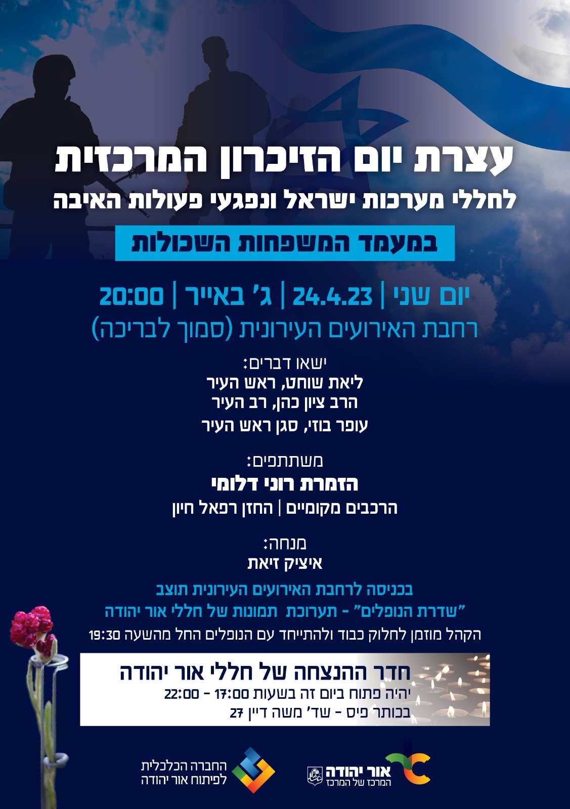 יום שני, 24.4.23, ג' באייר, 20:00, רחבת האירועים העירונית (סמוך לבריכה)