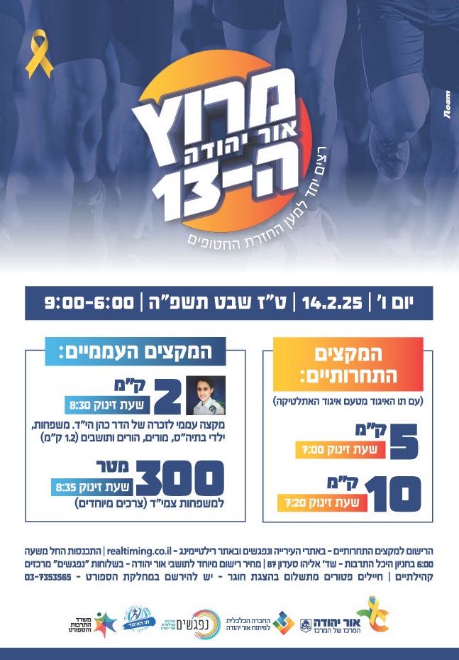 מרוץ אור יהודה ה-13 - רצים יחד למען החזרת החטופים