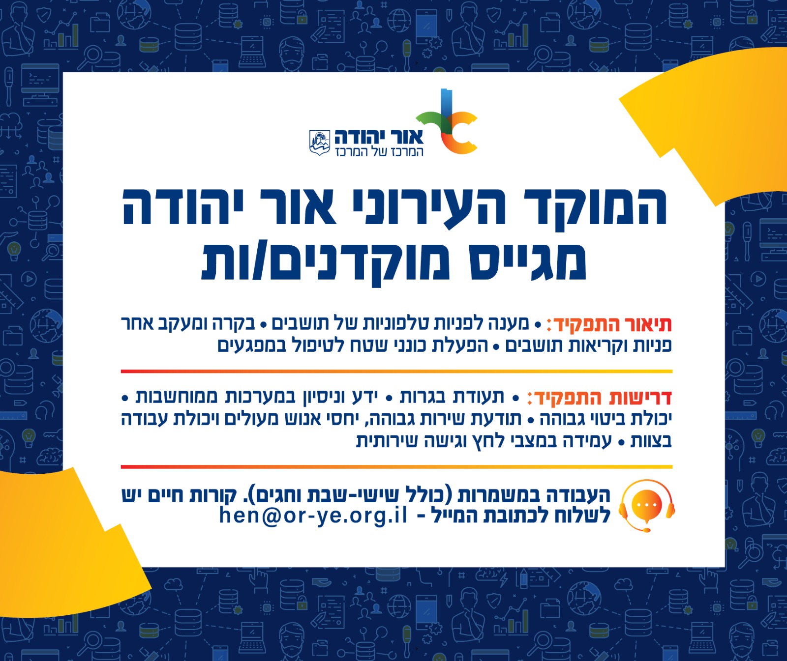 העבודה במשמרות (כולל שישי-שבת וחגים). קורות חיים יש לשלוח לכתובת המייל - hen@or-ye.org.il