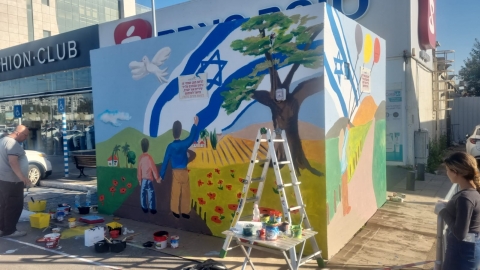 קהילה קיר גרפיטי חדש לשחרורו של אלמוג מאיר ג'אן החטוף בעזה נחנך באזור התעשייה ספיר