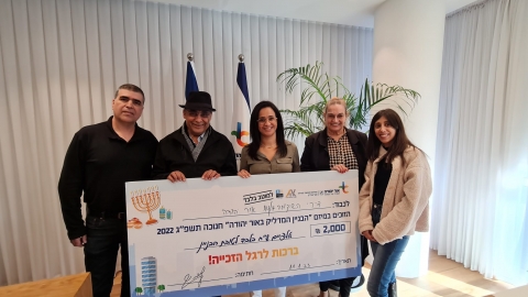 קהילה פרס כספי הוענק לדיירי רחוב השקמה 14 שזכו בתחרות הבניין המדליק