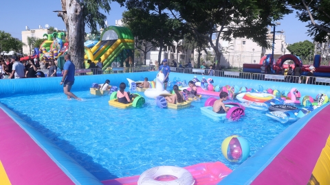 התושבים הגיעו לגן התשעה כדי ליהנות משלל הפעלות מים לכל הגילים ומכל הסוגים - מגלשות קצף רבות, מגלשות פיראטים, מגלשת כריש, בריכת סירות פדלים ועוד. האירוע הופק על ידי אגף תרבות ואירועים