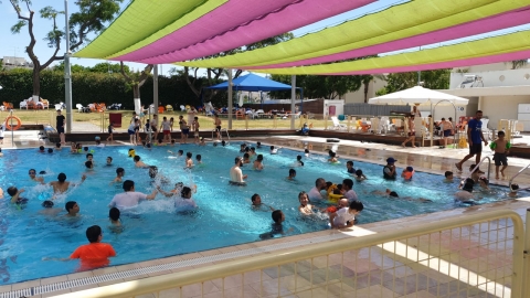 מאות תושבים מכל הגילאים החלו לפקוד את הבריכה שמופעלת על ידי "נפגשים" בהתאם להנחיות משרד הבריאות והתו הסגול