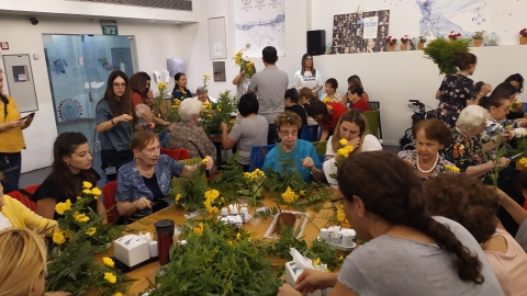 סדנת שזירת פרחים בהשתתפות כ-40 ניצולי שואה