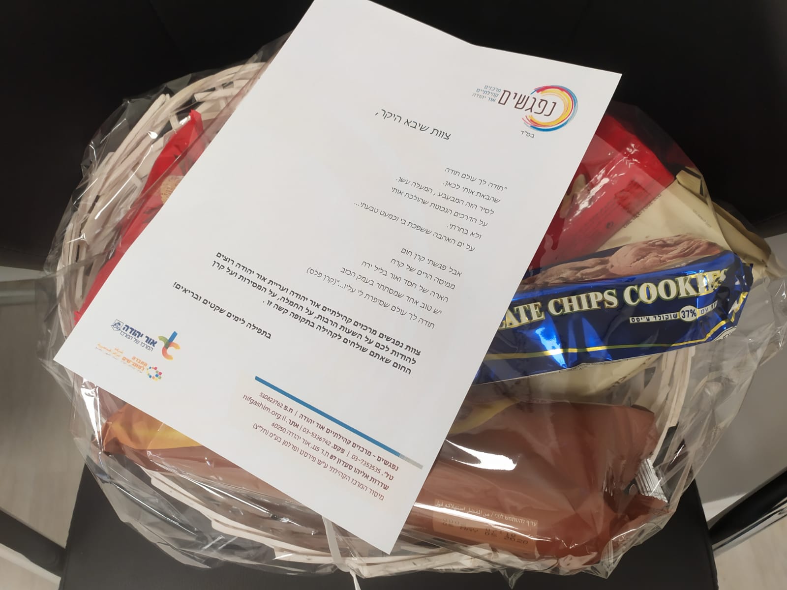 ביוזמת "נפגשים" מרכזים קהילתיים נשלח השבוע לצוות הרפואי בבית החולים שיבא תל השומר מארז מפנק של קפה ועוגה לאות תודה על התקופה הקשה שהם חווים. למארז צורפו מכתבי תודה וברכות של ילדי אור יהודה.