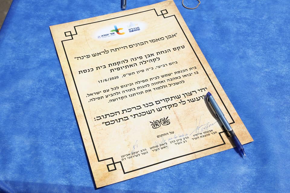 עיריית אור יהודה קיימה בשבוע שעבר טקס הנחת אבן פינה להקמתו של בית הכנסת לקהילה האתיופית. האירוע נערך במעמד ראש העיר, ליאת שוחט, רב העיר, הרב ציון כהן, סגני ראש העיר וחברי המועצה וכמובן בני הקהילה האתיופית בעיר. מבחינתו של אבטמו אייאיו, חבר מועצת העיר ובן הקהילה, היה זה יום חג עבור הקהילה שסוף סוף רואה את הפרויקט יוצא לדרך.