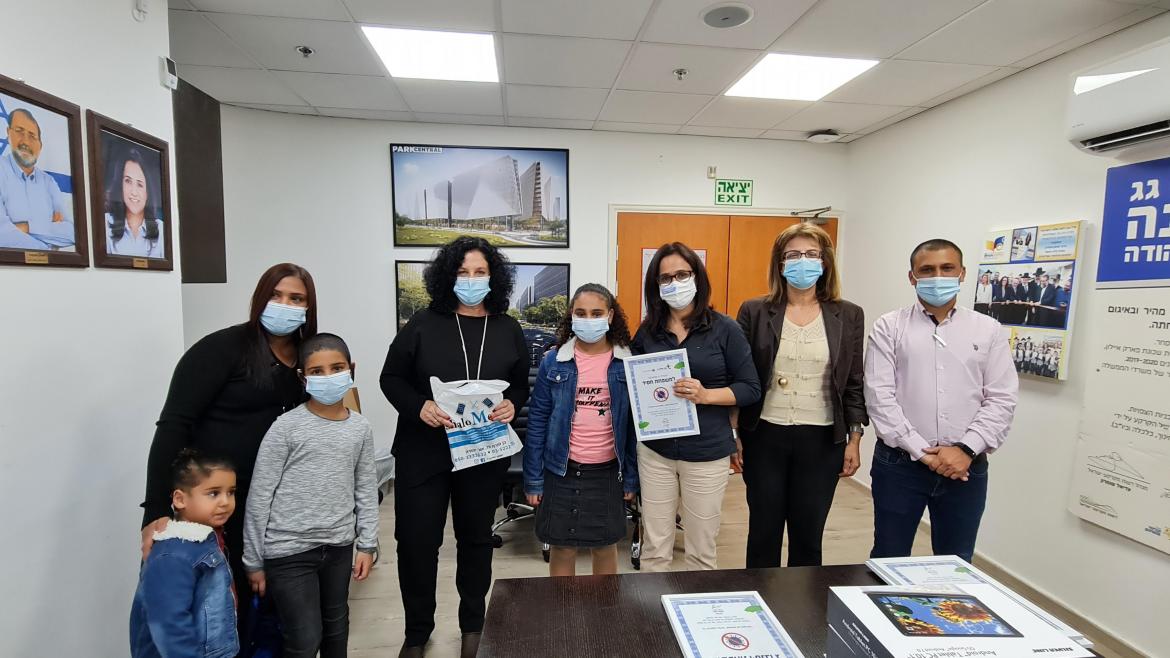 השבוע פגשה ראש העיר, ליאת שוחט, יחד עם דפנה ברוורמן מארגון "נותנים באהבה" ומנהלת אגף החינוך, דלילה אשכנזי, את הזוכים המאושרים שסיפרו על התהליך שעברו בדרך להפקת התוצרים. שוחט אמרה להם: "קיבלנו הרבה מאוד תוצרים במשימות שיצרנו, אבל אתם הייתם הבולטים. אין ספק שכל אחד ואחת מכם שגרירים מצוינים של העיר ובזכות המשמעת שאתם מנחילים לאחרים, יהיה קל לנו יותר להתמודד עם הנגיף. ההצלחה בהתמודדות עם הנגיף היא בראש ובראשונה משמעת עצמית ובלעדיה יהיה קשה להחזיר את אור יהודה להיות עיר ירוקה. יישר כוח לכל מי שלקח חלק בפרויקט".