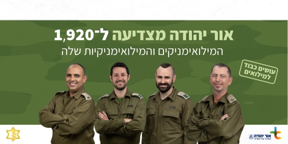 עיריית אור יהודה יחד עם דובר צה"ל יצאו לאחרונה בקמפיין שבו מתקיימת הצדעה ל-1,920 אנשי ונשות המילואים הפועלים בשנה האחרונה. מדובר בקמפיין ארצי שמטרתו להוקיר תודה למשרתים ולמשרתות על פועלם ותרומתם לביטחון המדינה, כאשר הקמפיין מדגיש את נחיצות עשייתם וחשיבות מעגלי התמיכה בהם - המשפחה והעבודה.