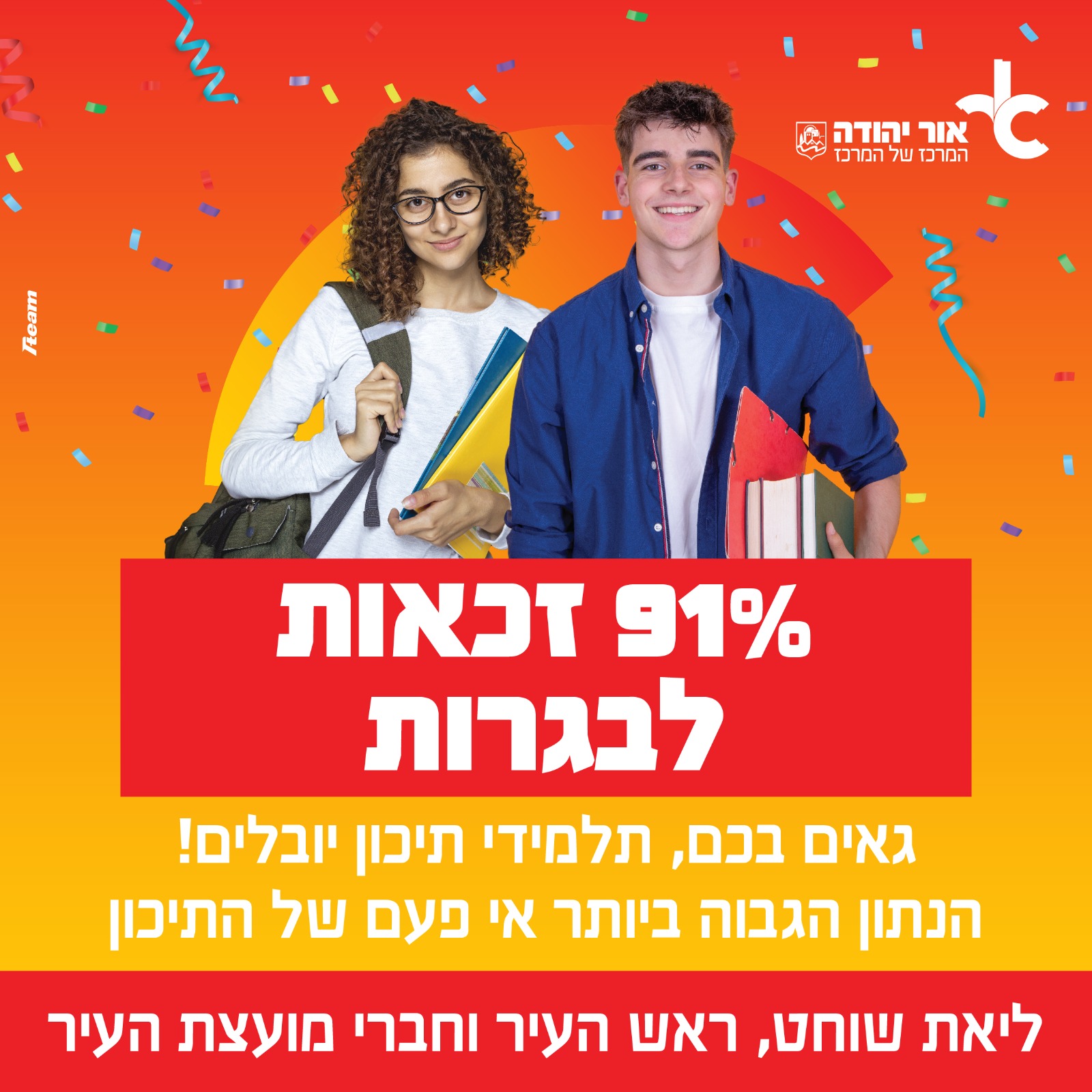 אור יהודה זינקה ב-14% בזכאות לבגרות - הנתונים הגבוהים אי פעם