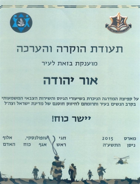 במעמד הטקס יקבל דוד יוסף, ראש העיר אור יהודה, עם עוד 22 ראשי רשויות, תעודת הוקרה על הישגים בתחום אחוזי הגיוס לצה"ל.