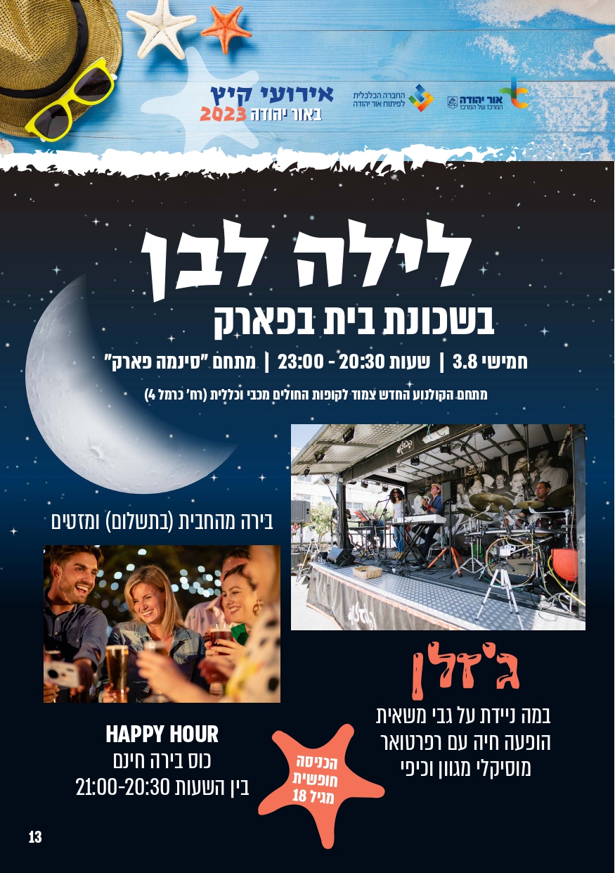 יום חמישי | 3.8.23 | שעות 20:30 - 23:00 | מתחם "סינמה פארק" – מתחם הקולנוע החדש צמוד לקופות החולים מכבי וכללית (רח' כרמל 4)