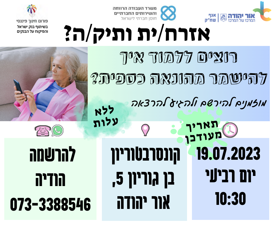 רוצים ללמוד איך להישמר מהונאה כספית? מוזמנים להירשם ולהגיע להרצאה ללא עלות.