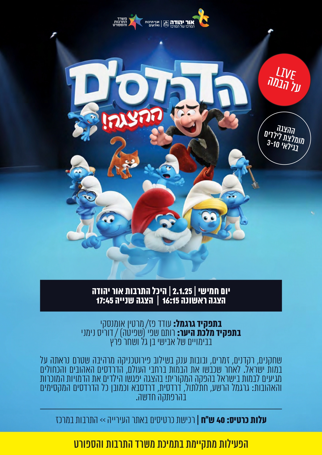 הצגה ראשונה 16:15 | הצגה שנייה 17:45