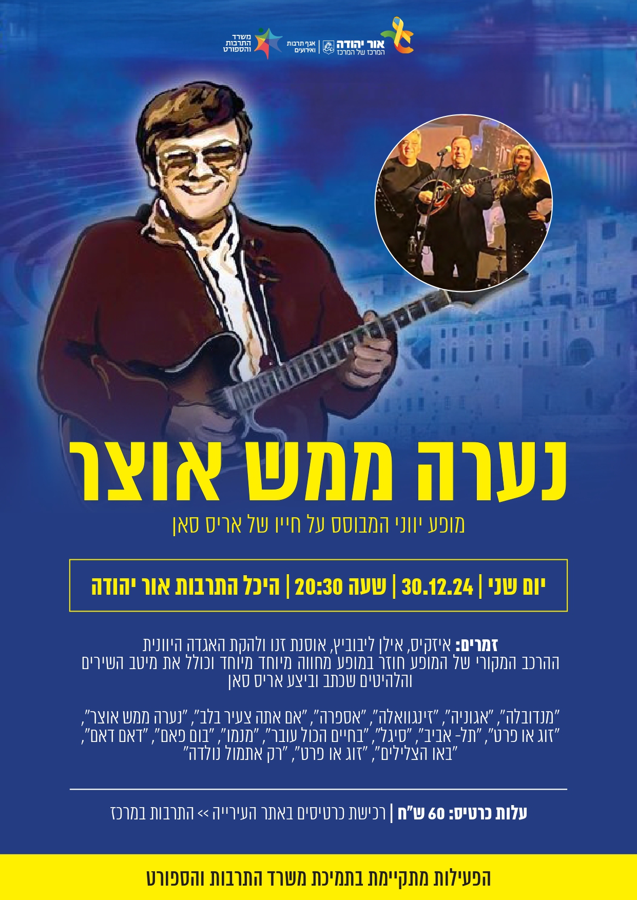 עלות כרטיס: 60 ₪ | לרכישת כרטיסים: אתר העירייה >> התרבות במרכז