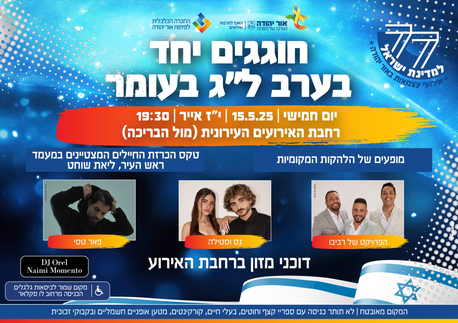 יום חמישי, 15.5.25, י"ז אייר, 19:30, רחבת האירועים העירונית (מול הבריכה)