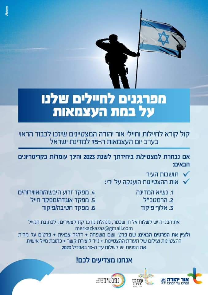 קול קורא לחיילות וחיילי אור יהודה המצטיינים שיזכו לכבוד הראוי בערב יום העצמאות ה-75 למדינת ישראל